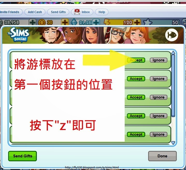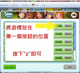 1.將游標放置在第一個按鈕的位置,按下z開始